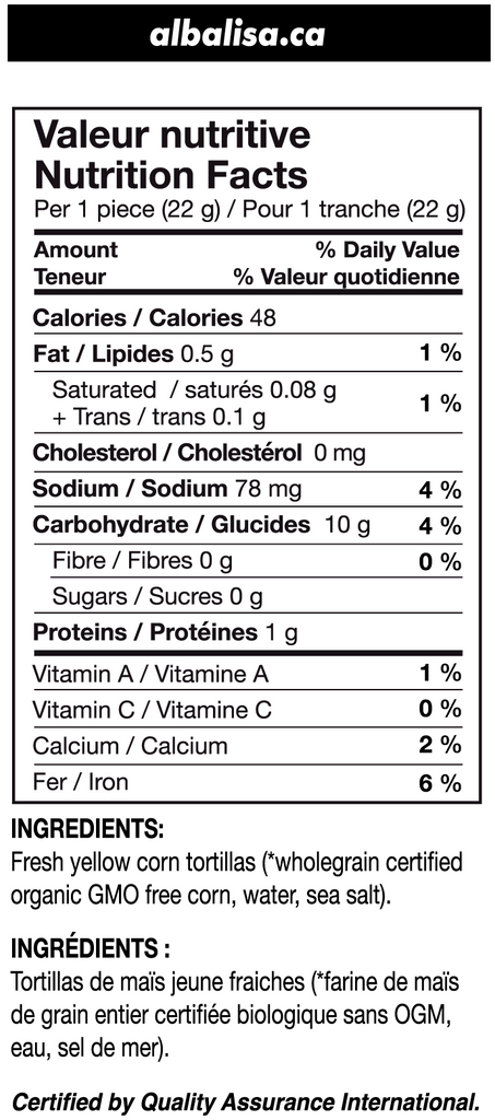 A nutty aromatic flavoured corn tortilla made with yellow organic, gluten-free corn flour. Use it with fish, pork or beef.